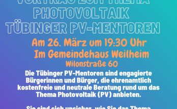 Erinnerung – Am 26.3. Vortrag zum Thema Photovoltaik im Gemeindehaus Weiterlesen