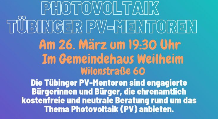 Alle sind herzlich zu dem Vortrag der Tübiner PV Mentoren diesen Donnerstag, den 26.3. um 19.30 Uhr im Gemeindehaus eingeladen. Wir freuen uns über Euer Kommen!