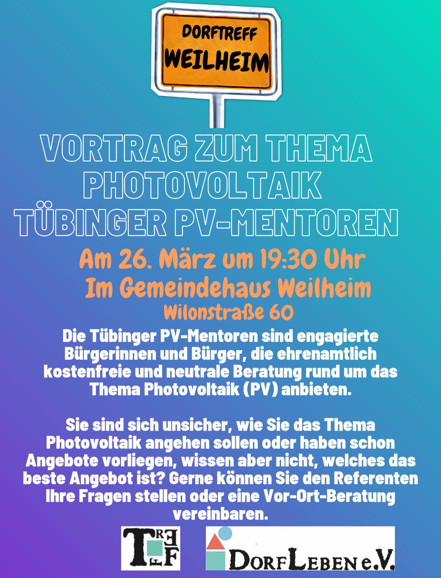 Der Dorftreff lädt herzliche zu einer Veranstaltung zur Instalation von Photovoltaik – Anlagen ein.