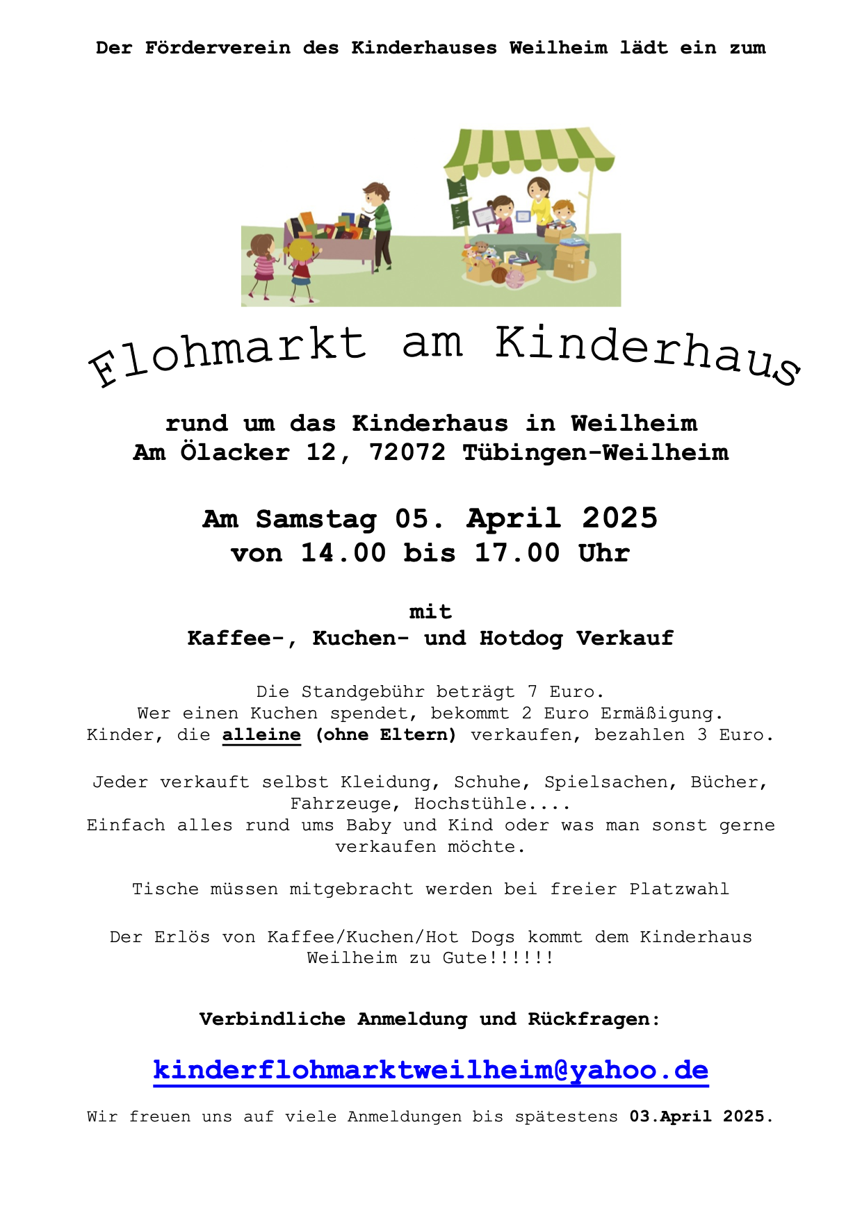 Am 05.04.25 veranstaltet der Förderverein des Kinderhaus Weilheim wieder einen Flohmarkt rund um das Kinderhaus in Weilheim